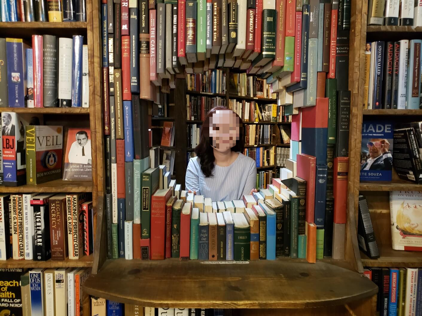 2층에는 잠시 앉을 수 있는 소파도 몇 개 마련되어 있고, 그 앞에 이런 포토 스팟도 있습니다. 책들을 붙여 벽을 만들고, 그 가운데를 둥글게 뚫어 얼굴을 내밀고 찍을 수 있는 공간입니다. 1층만 보면 그냥 평범한 서점 같은데 2층으로 올라와 보면 온갖 책으로 만든 테마파크가 아닌가 하는 생각이 듭니다. 이런 식으로 포토 스팟을 만들어 둔 서점이 어디 있을까요 ㅎㅎ개인적으로 너무 마음에 드는 사진이기도 합니다. 저는 순전히 서점 구경을 목적으로 갖기 때문에 이번에 책을 사지는 않았지만, 같이 간 친구는 어린이 중고책이 너무 싸다며 세네 권 손에 들었고, 집에 장식할 두꺼운 디자인 책도 구매했습니다. 평소 찾고 있던 책인데 다른 곳에서 보기 어려웠다가 여기 오니까 발견했다고 하네요. 갖고 있는 책들이 박물관 수준이니 뜻밖의 책을 찾을지도 모르겠습니다. LA 다운타운에서만 가능한 재미있는 서점 투어입니다 :)