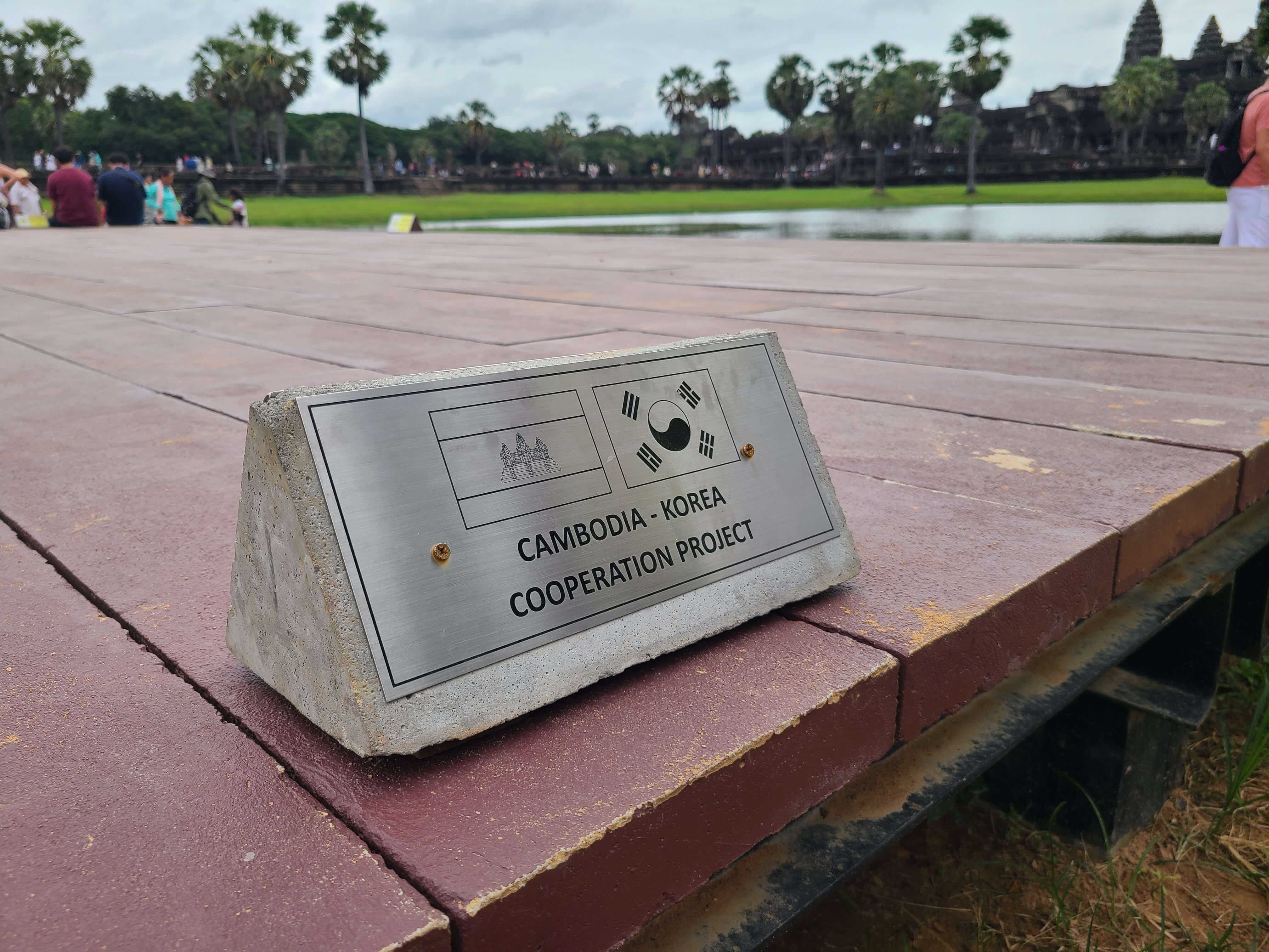 앙코르와트는 다들 아시다시피 유명한 세계문화유산 중에 하나입니다. 그렇지만 워낙 오래된 사원들이라 세월과 전쟁에 의해 부서진 곳들이 많고, 또 그걸 재건하기에는 캄보디아 정부만의 힘으로 하기는 어려워서 현재 여러 나라에서 캄보디아 정부와 협력해 앙코르와트 사원들을 복원하고 있습니다. 이곳에 있는 사원 재건은 한국이 도움을 주고 있다는 표지판이 자랑스럽기도 해서 찍어왔습니다.