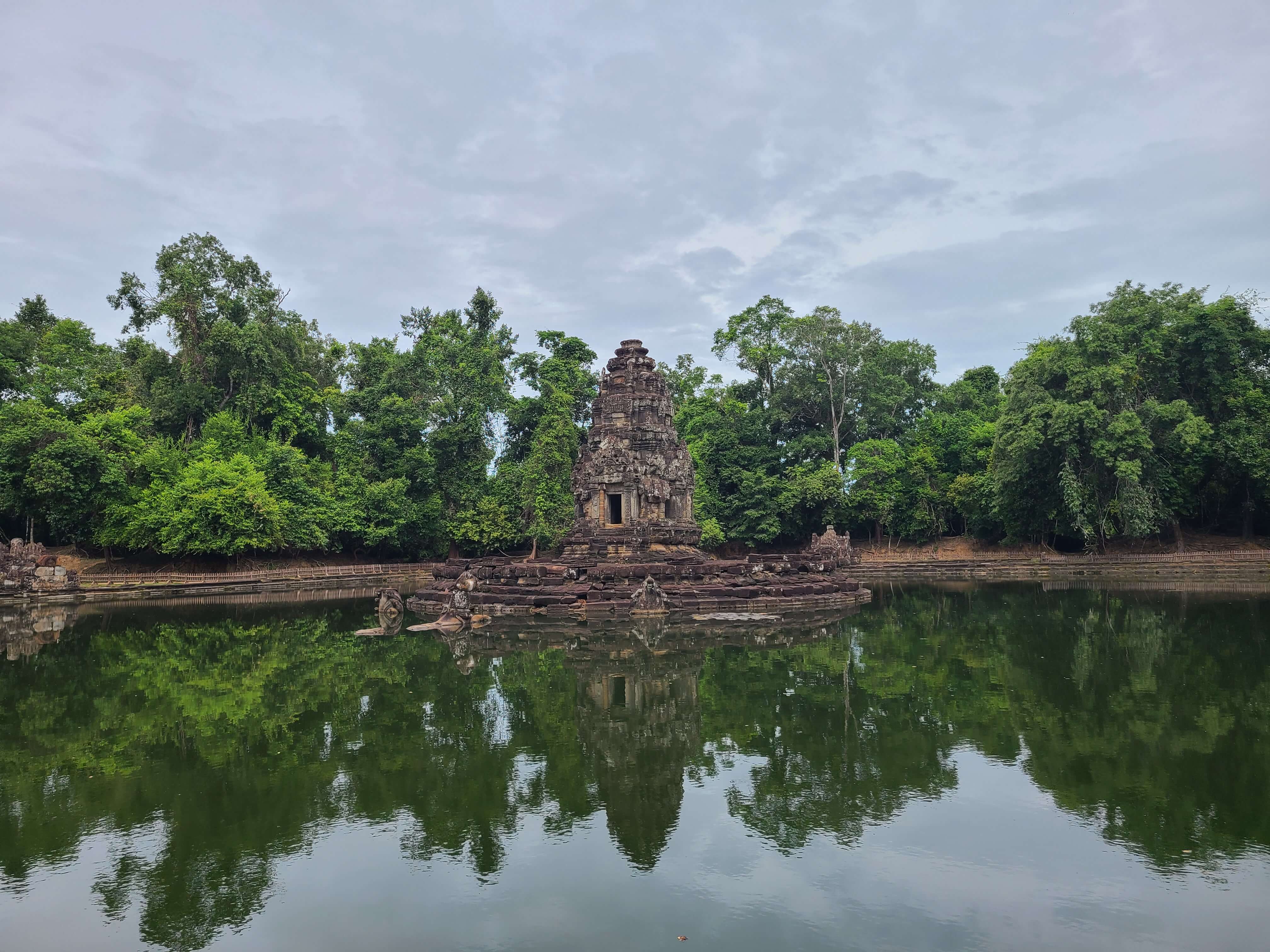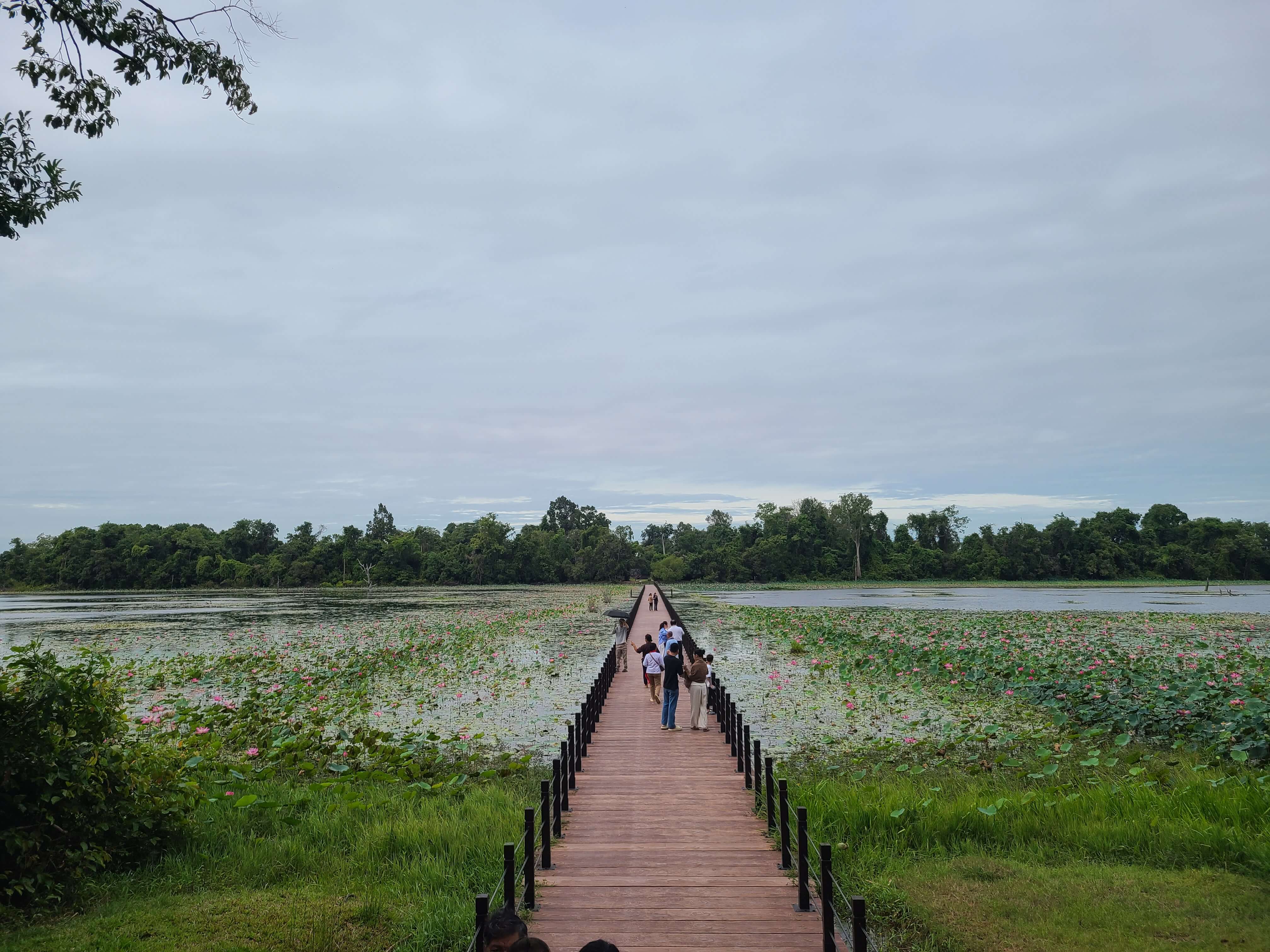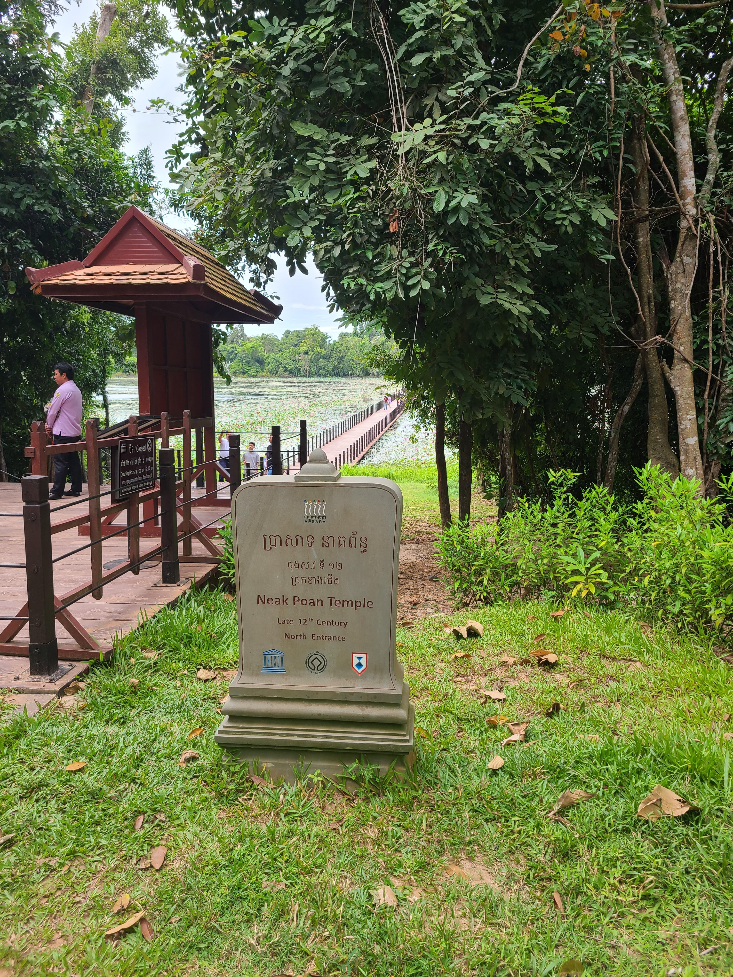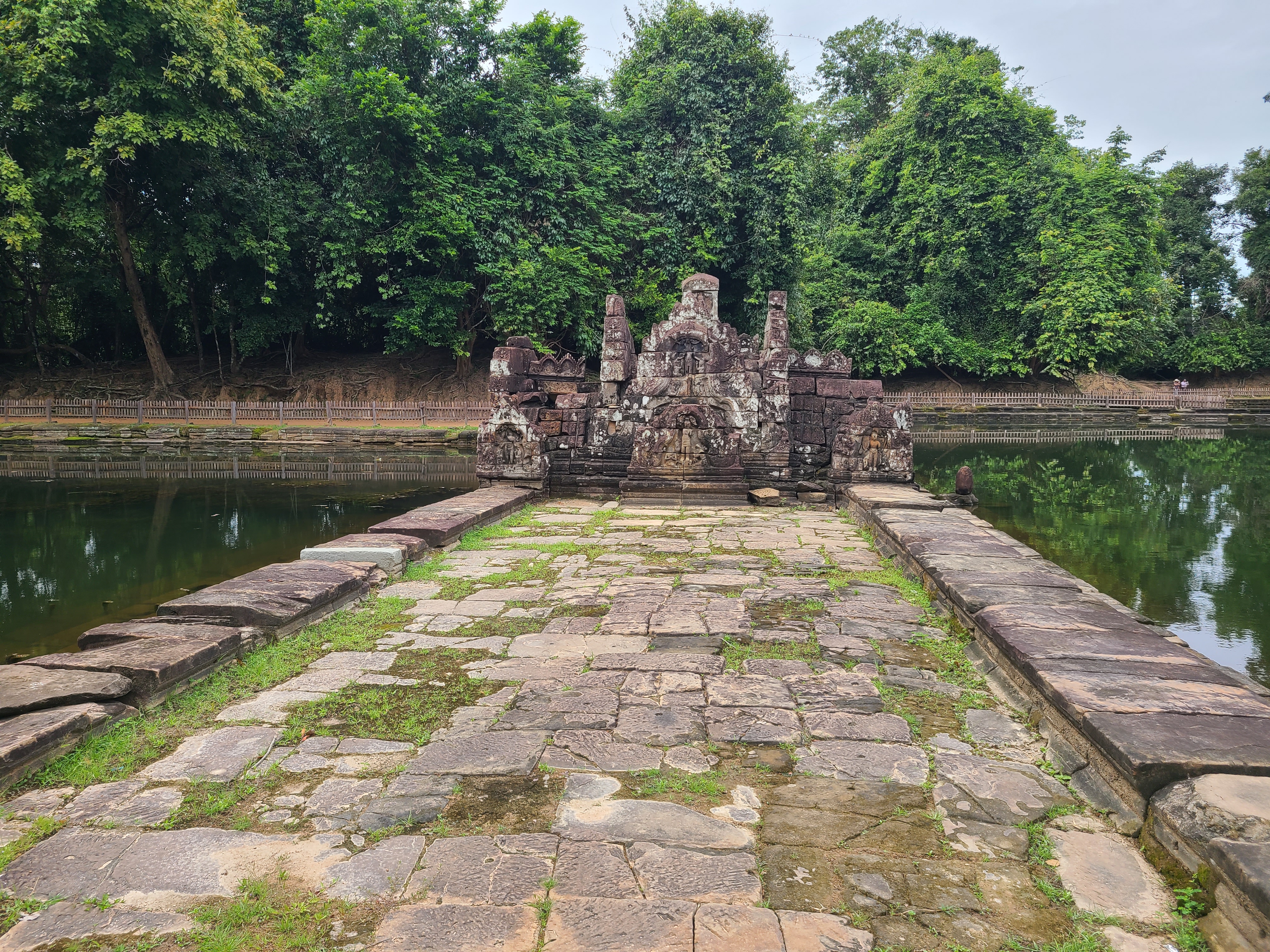 습지를 지나 안 쪽으로 들어가면, 중앙 연못과 네악포안 사원이 보입니다. 사원을 둘러싼 네 개의 작은 연못은 각각 동서남북의 자연 요소(흙, 물, 불, 바람)를 상징하며, 물의 힘으로 질병과 악령을 씻어내는 의식용 치유 공간으로 쓰였다고 합니다. 특히 중앙 연못을 감싸고 있는 두 마리의 큰 나가(신성한 뱀) 조각이 사원의 상징입니다. 현재는 연못의 물이 계절에 따라 많거나 적지만, 비가 내린 직후나 우기에는 물이 가득 차 거울처럼 반짝이며 환상적인 풍경을 연출합니다. 주의할 점은 사원은 연못에 둘러 사여 있어 직접 내부로 들어가거나 건물에 오를 수 없습니다. 사원을 보며 연못 주변을 산책하는 게 이곳의 포인트이자 관람에 중심입니다. 저는 오후에 일정이 있어서 오전 중에 갔지만, 일몰 시간에 가면 물에 비치는 석양이 아름답기로도 유명합니다.