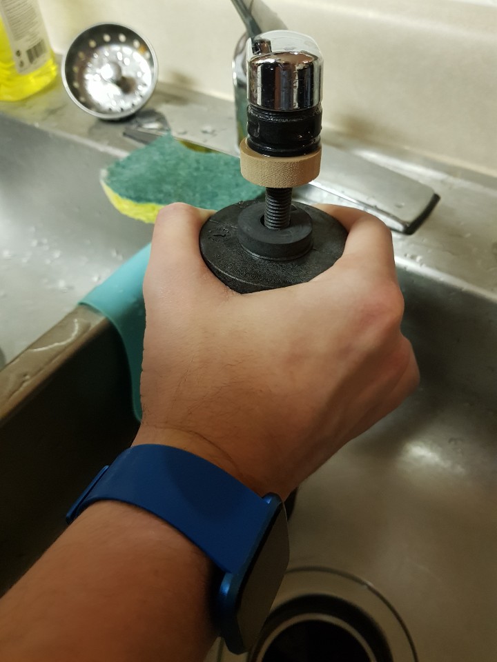 압력을 주는 부품을 위에 올리고 위에서 물을 졸졸 흘려줍니다.