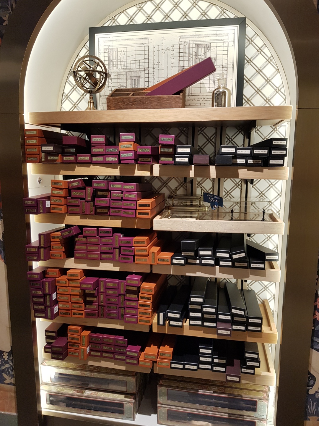 지팡이 전시대도 이렇게 멋지게 만들 일인가요. 지팡이 가게에 가면 영화 속 인물들의 모든 지팡이가 다 있는데, 이건 그 중에서 진액만 뽑아서 만들어놨습니다.