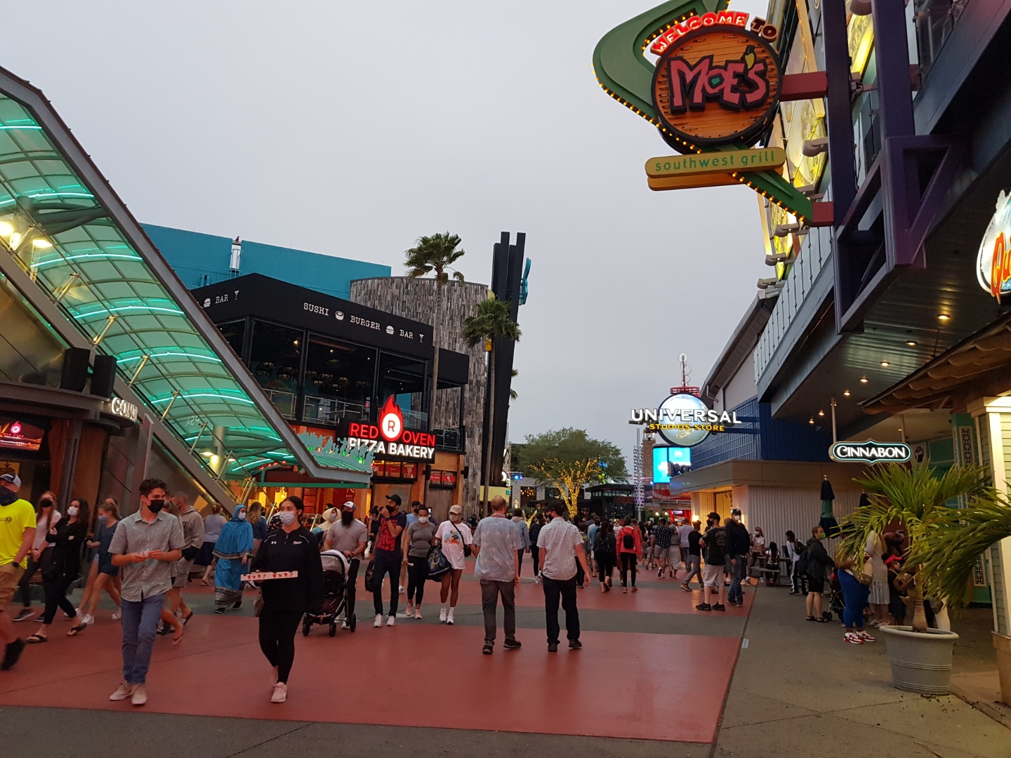 올랜도 유니버셜 스튜디오 테마파크로 가기 위해서는 유니버셜 시티워크를 지나야 합니다. 각종 상점과 식당들이 있어 테마파크로 향하는 길을 즐겁게 해 주고, 테마파크 이용자가 아니어도 시티워크는 누구든지 가서 즐길 수 있는 공간입니다. 저는 호텔에 짐을 풀고 저녁 6시쯤에 셔틀버스로 유니버셜로 향했습니다.
